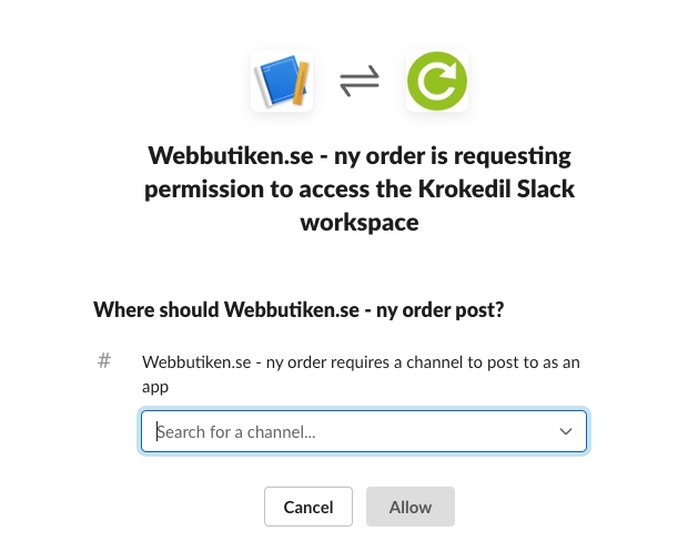 Följande information behövs för att ansluta Slack som en ny connection i Kroconnect: