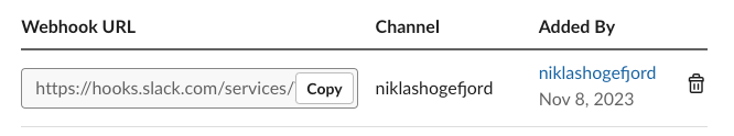 - Kopiera webhook URL’en som nu har skapats.