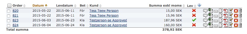 • För att sätta en order till status Avbruten i WooCommerce behöver du Avbryta ordern i Specters system (det gör du genom att klicka på den röda fyrkanten i bilden nedanför).